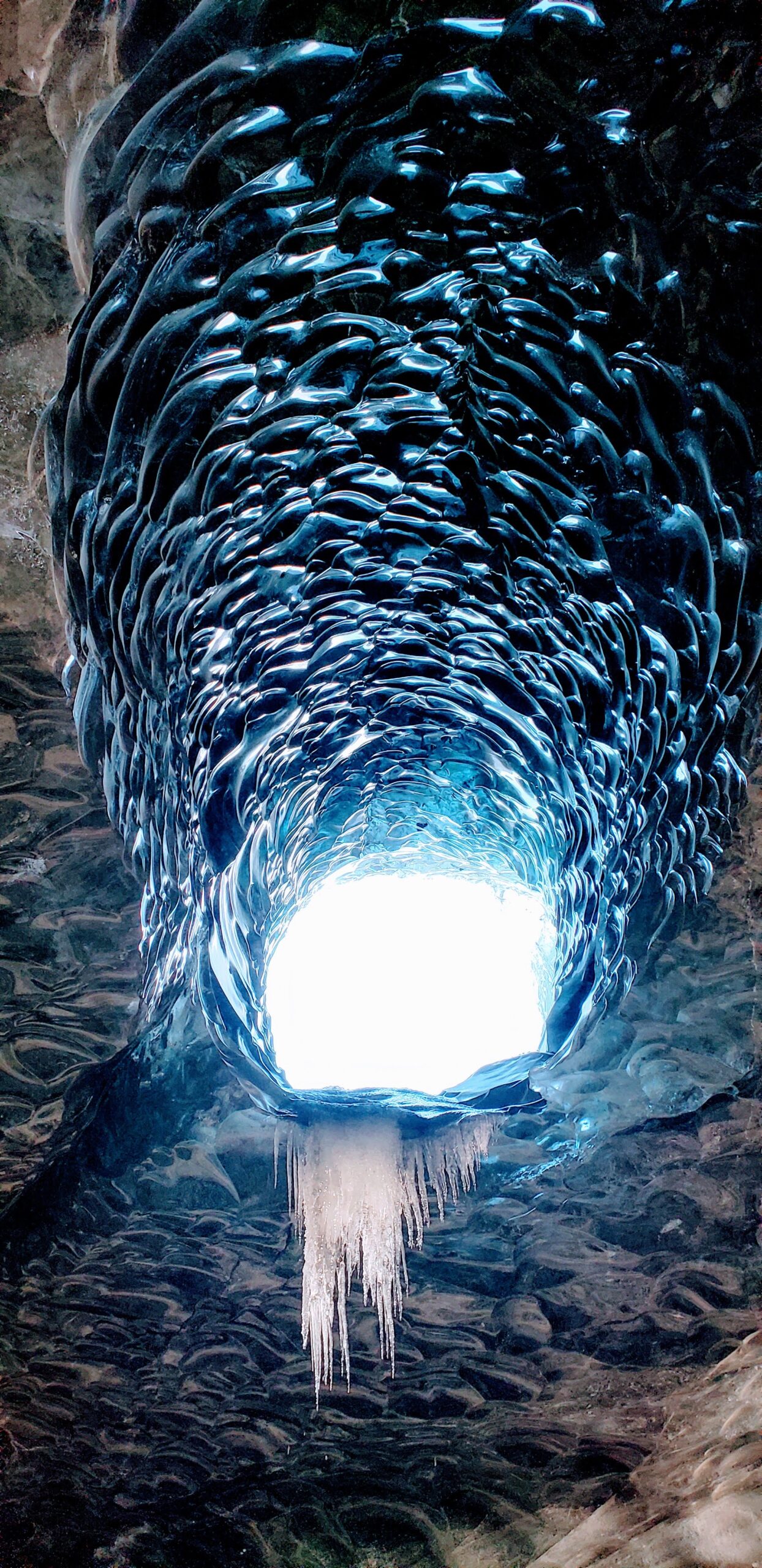 Wearing spiked crampons strapped to our boots, we hiked and then rappelled down into the glacier itself—into a cathedral of frozen time. The cave was a swirl of deep blues, smoky blacks, and icy whites, sculpted by centuries of pressure, melt, and movement. The silence inside was deafening. Just the drip of water, the crunch of ice beneath our feet, and the occasional “wow” whispered into the void.